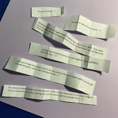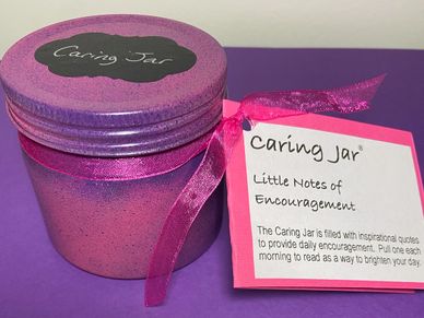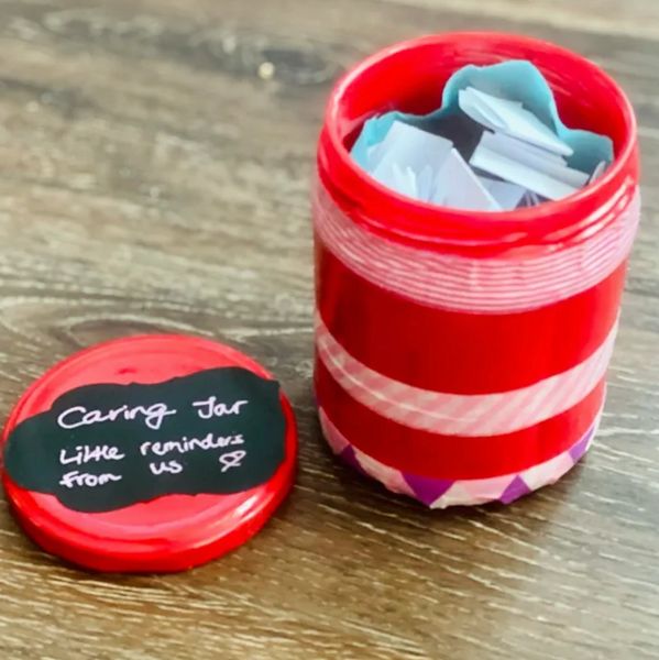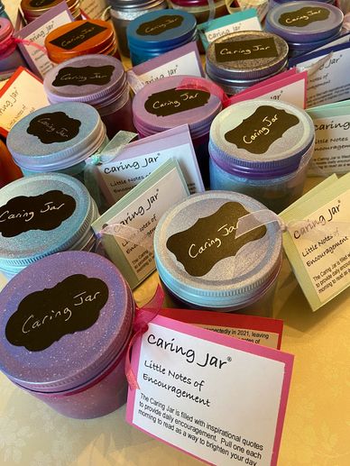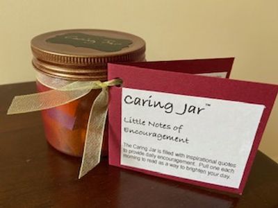 Charlotte created the first Caring Jar for her mom who was diagnosed with cancer in 2020. Charlotte asked family members to write special notes of care, support and encouragement for her mom and filled the jar with these personalized notes as well as inspirational quotes. When the jar was getting low of notes, she added more.