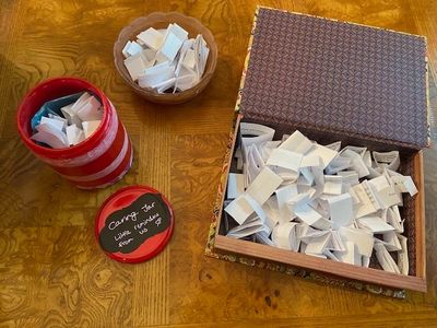As you pull notes from your jar, you may place them in other containers for safe keeping, or to use again. The personalized notes will be a treasured correspondence between you and your loved ones that you shared this experience with.